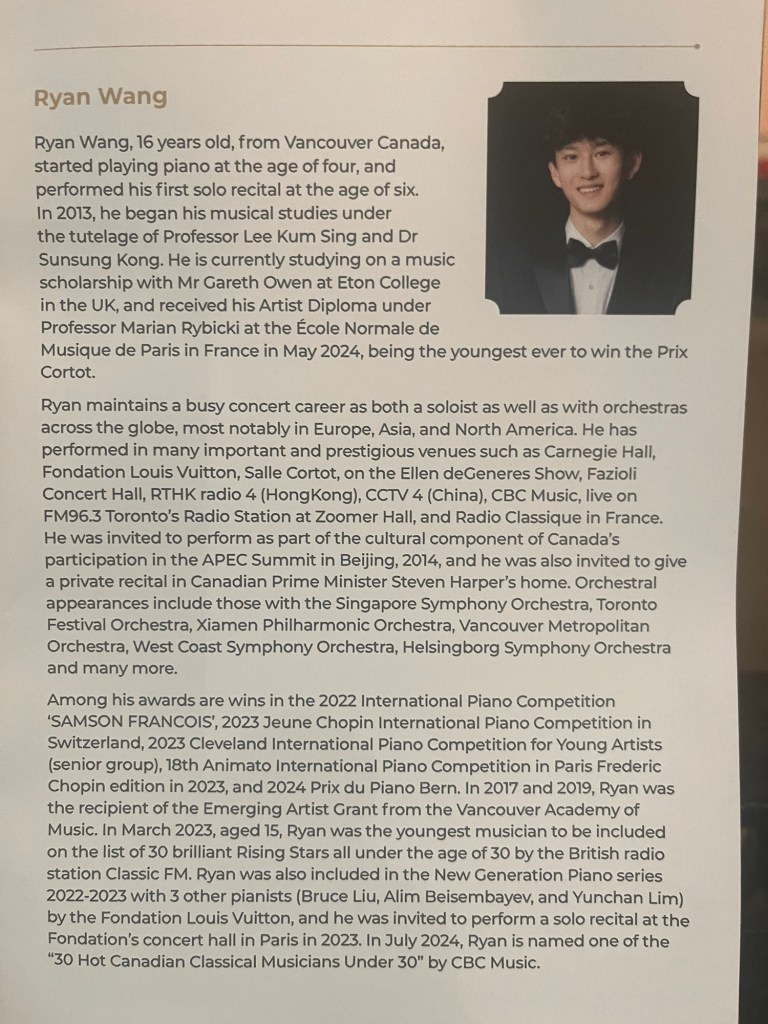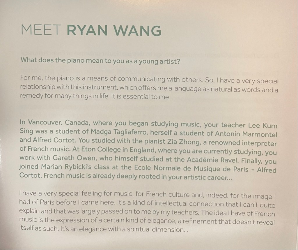New York Concert Review: “Mercurial mood changes, extreme dynamics, and elements of atonality all contribute to the difficulty of this repertoire, but the young Mr. Wang was up to the challenge!”