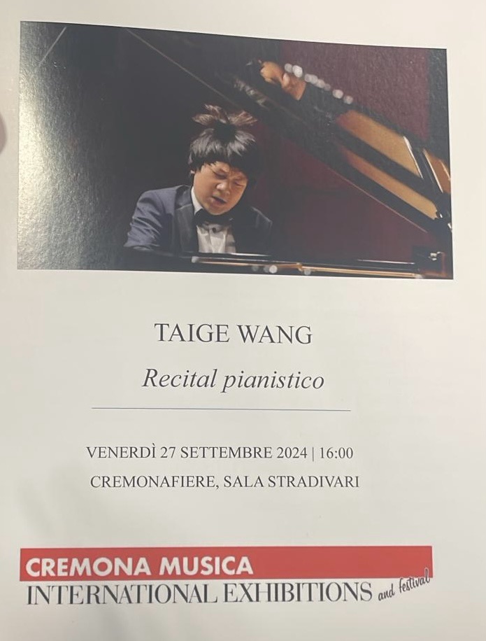 ‘Taige Wang’s much anticipated debut at the Cremona Musica Festival largely fulfilled all expectations from this young genius of the piano. At 14, Taige is already a master of the instrument with a complete command of every facet of piano playing: octaves, scales and arpeggios, double notes, LEGGIEREZZA, flying staccato and a superb sound! Stuff of the piano legends! But what is unique is his creativity as an artist. Every piece he played was a tone poem highlighting new aspects of beauty in the repertoire he performed in many unusual ways.