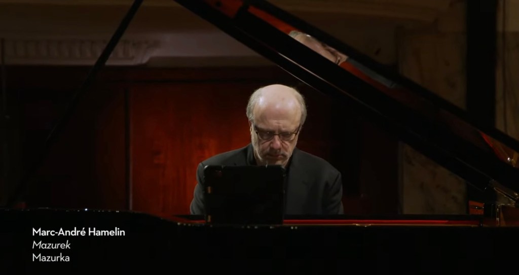 A standing ovation even if Marc-André had excluded Chopin from his programme.But he did include a Mazurka of his own and dedicated it to an American friend of Polish extraction who had passed away this year. A work lasting about five minutes of ravishing colours and subtle rhythms.