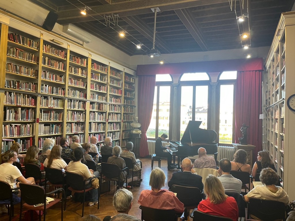 A room with a view ……not only …..as the refined sounds of a troubadour of the piano held the select audience in the Harold Acton Library spellbound.