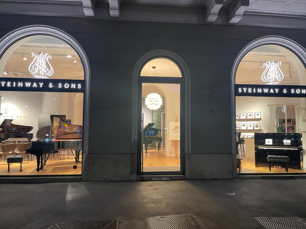 Kyle with Maura Romano director of the new Steinway Flagship in Milan