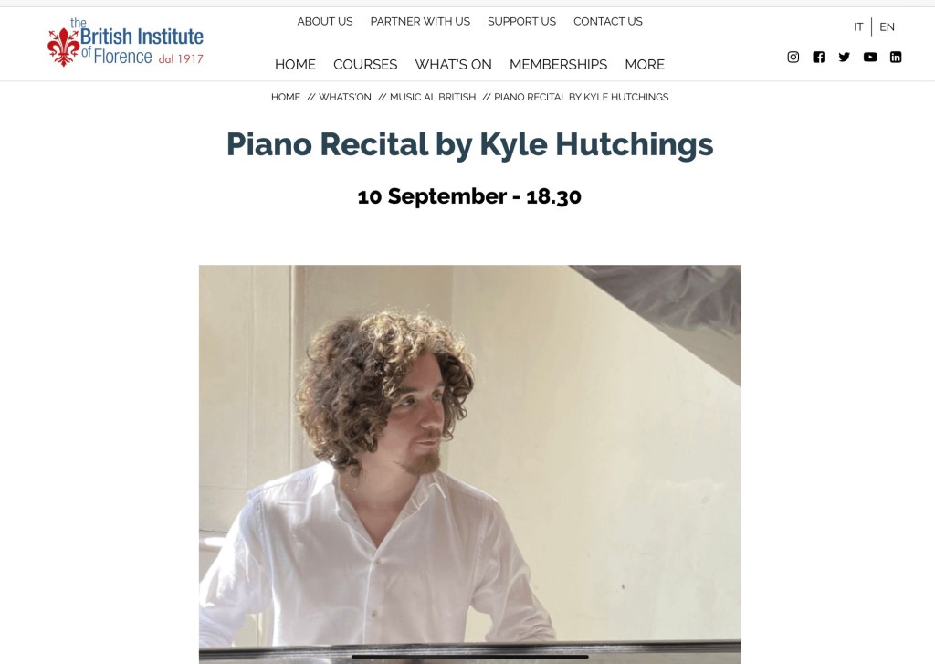 4 risposte a "Kyle Hutchings A poetic troubadour of the piano reveals the heart of Mozart,Schubert and Franck the Keyboard Trust Concert Tour of Adbaston ,Ischia,Florence and Milan"