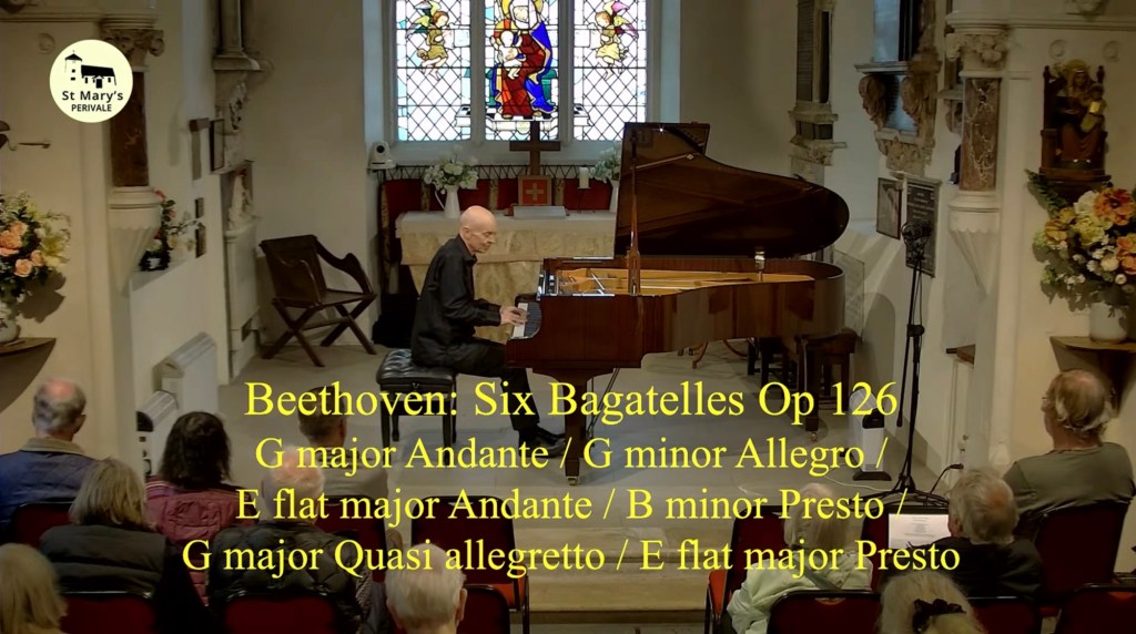 The enigmatic maestro Magill astonishes and informs us again, this time with simple grand Beethoven. The last thoughts on the piano with his six bagatelles op 126 and then the longest and most complex of all his 32 Sonatas ,the ‘Hammerklavier’ op 106. Beethoven of course from one extreme to another as his lifelong journey as depicted in 32 steps comes to an end and the paradise that awaits is in sight after a long and turbulent life .It is this contrast between turbulence and serenity that Ronan Magill brought out with astonishing clarity not only of playing but above all of thought.