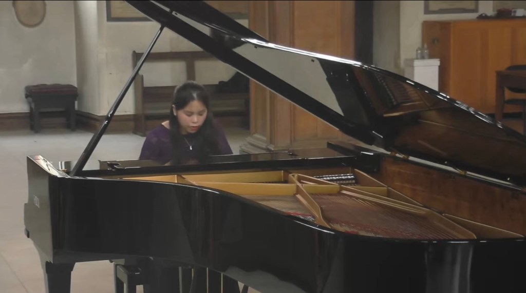 Mateusz Dubiel a very young looking artist but artist he certainly is ( see below for biography – born in 2004) . Great fluidity and refined rubato in Chopin’s most passionate of all Nocturnes. A cry of joy and ecstasy that this young man played with crystalline clarity where the intricate counterpoints were strands of sounds or voices each one answering the other with a remarkable technical mastery of sound. I was alarmed at hearing the opening of the B minor Sonata in a concert of four pianist of whom Mateusz was only the second! But alarm turned to deep enjoyment of a young man who could bring such architectural strength to this Maestoso opening movement.Unbounded admiration for the crystalline clarity of his fingers in the fleeting Scherzo and his mastery of line in the sumptuous Trio. Linking the end of the Scherzo to the opening dramatic opening of the Largo is a master stroke that only the most sensitive of artists can understand.The Presto non tanto although his youthful passion did not allow for the crescendo on the opening introductory flourish his musicianship and architectural understand immediately after added such excitement to the rondo as it returned ever more insistently until boiling over into a coda that was truly masterly.