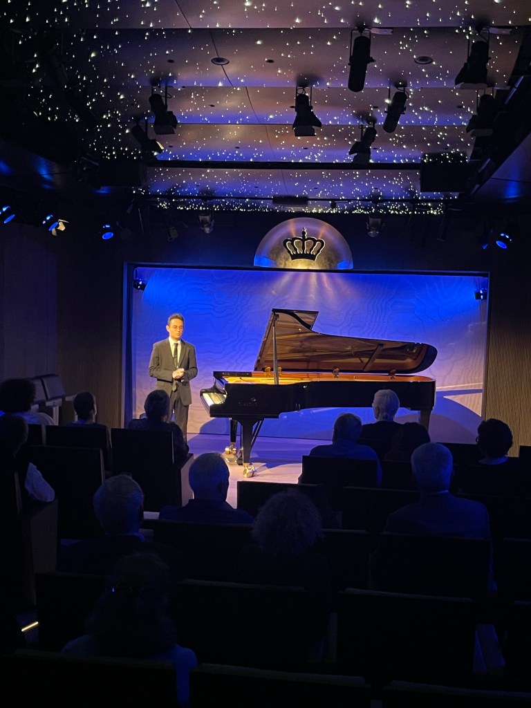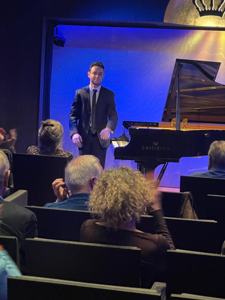 ‘Scarbo’ opened deep in the bass of the piano with three notes with an extraordinary diminuendo followed by chords with very fast reverberations of repeated notes.The notes are notoriously difficult but Axel resolved the problem by playing them with the left hand not the right! Bursts of radiant light erupted over the entire keyboard as the music moved inexorably forward with demonic insistence.Axel’s crystal clear precision and scrupulous attention to detail illuminated so many things as this little goblin flitted around the keyboard with demonic transcendental mastery.The final great climax created an overwhelming impact as Axel drew us unto the fray with astonishing mastery with the little goblin after all that rhetoric fitting off with nonchalant ease.