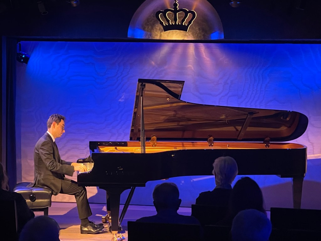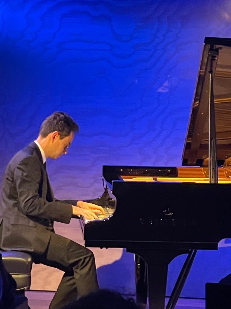 It was enough to hear the opening of Bach’s Italian concerto to realise we were in the presence of a real musician with a technical command of the keyboard that could allow him to add ornaments that were like tightly wound springs.But these were subtle ornaments that just highlighted his architectural understanding as the opening movement was played with dynamic rhythmic energy and astonishing clarity. Contrasts of dynamics in layers that were hardly noticeable but illuminated the score with refreshing spontaneity.A slow movement seemingly without pedal as the left hand was a pulsating heartbeat over which expanded the ravishingly simple beauty of Bach’s cantilena.Playing of style and understanding that allowed him to round corners and breathe as a great bel canto singer creating a magical atmosphere of wonder and purity between the two dynamically driven outer movements.The last movement was played with an infectious ‘joie de vivre’ and rhythmic drive with colouring of orchestral proportions.
