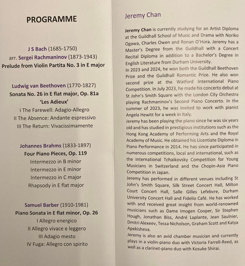 The year had finished on 14th December in the historic Laeiszhalle in Hamburg with a recital by the quite extraordinary Magdalene Ho (Weir Award holder), winner last year at the age of 19, of the Clara Haskil International Piano Competition in Vevey. A few months later she also won the Chappell Gold Medal, the most prestigious accolade of the RCM. https://christopheraxworthymusiccommentary.com/2024/02/17/hats-off-the-chappell-gold-medal-has-uncovered-a-genius/