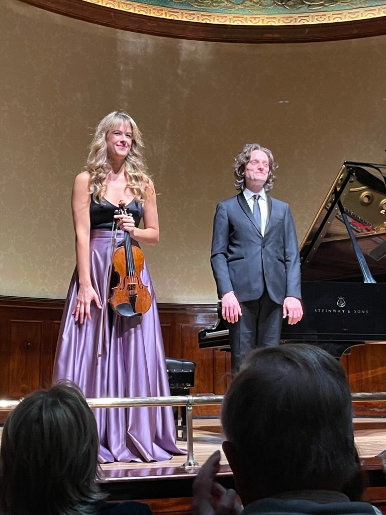 But the best was yet to come with a ‘Kreutzer’Sonata played by two masters . Breathtaking rhythmic energy and a dynamic range of kaleidoscopic colour. Has the final chord of the first movement ever sounded so final or the opening so noble ? Sumptuous full sound from the piano in the Andante only to be so teasingly and wondrously varied by these two remarkable artists.A question and answer of extraordinary characterisation before the call to arms of the Finale and the race was on. Breathtaking ensemble as they played as one at breakneck speed with never the slightest doubt that this was a relentless tarantella of devilish proportions .