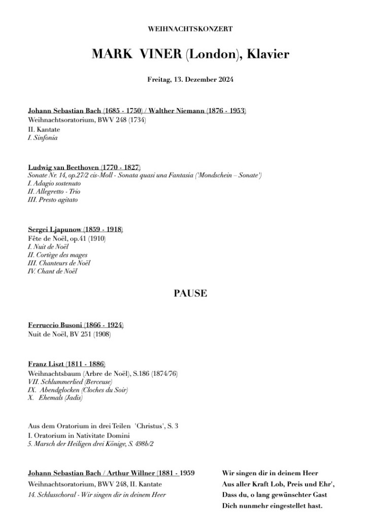Alessandro Taverna’s “music making stimulates the senses as does a visit to his native Venice”, and gives “rise to a feeling of wonderment”. When he reached the final and performed Chopin’s First Piano Concerto at the 2009 Leeds International Piano Competition, “the world was suddenly suffused with grave beauty: flawless minutes of poetry”, said the newspaper The Independent. Alessandro Taverna established his international career by winning major prizes at Minnesota Piano-e-Competition, London International Piano Competition, Leeds International Piano Competition and Busoni Piano Competition in Bolzano. Since then he has gone to perform in some of the most important concert halls and seasons including Teatro alla Scala Milan, Teatro San Carlo Naples, Teatro Petruzzelli Bari, Teatro Comunale di Bologna, Teatro La Fenice Venice, Musikverein Vienna, Konzerthaus Berlin, Gasteig Munich, Wigmore Hall and Royal Festival Hall in London, Bridgewater Hall Manchester, Salle Cortot in Paris, Philharmonic Hall Liverpool, Musashino Hall in Tokyo, Auditorium Parco della Musica Rome. His success has led to engagements with many prestigious orchestras including Filarmonica della Scala, Münchner Philharmoniker, Dallas Symphony Orchestra, Orchestra Sinfonica Nazionale RAI, Royal Philharmonic Orchestra, Minnesota Orchestra, Royal Liverpool Philharmonic, Bournemouth Symphony, Bucharest Philharmonic, Scottish Chamber, Orchestra of the Accademia Teatro alla Scala, working with conductors including Lorin Maazel, Riccardo Chailly, Fabio Luisi, Myung-Whun Chung, Daniel Harding, Michele Mariotti, Reinhard Goebel, Carlo Boccadoro, Thierry Fischer, Michael Guttman, Claus Peter Flor, Roland Böer, Joshua Weilerstein. The London Keyboard Trust has presented him in recitals in Europe and the United States with Wigmore Hall debut in February 2012.. Born in Venice, Alessandro Taverna studied with Laura Candiago Ferrari at the Santa Cecilia Music Foundation in Portogruaro and with Franco Scala, Leonid Margarius, Boris Petrushansky and Louis Lortie at the Imola International Piano Academy. He later specialised at the Santa Cecilia National Music Academy in Rome with Sergio Perticaroli, at the Hochschule für Musik in Hannover with Arie Vardi, and at the Lake Como Piano Academy. Taverna teaches at Imola International Piano Academy “Incontri col Maestro”, at the Conservatory of Music “Cesare Pollini” in Padova and at Santa Cecilia Music Academy in Portogruaro. For his artistic achievements and his international career, he was awarded the Premio Presidente della Repubblica in 2012.https://christopheraxworthymusiccommentary.com/2024/12/25/point-and-counterpoint-2024-a-personal-view-by-christopher-axworthy/