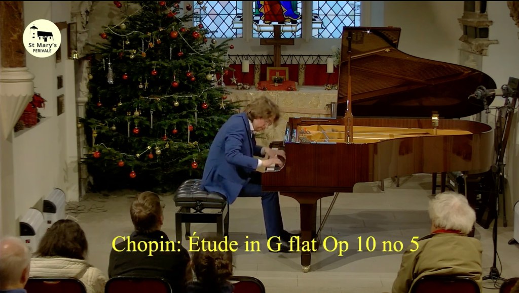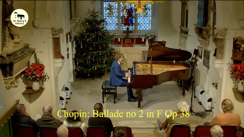 The Chopin Ballades that he chose are the two most pastoral with the beautiful flowing lines of the third that he played with lilting beauty and charm.He was able to incorporate all the ravishing embellishments and Chopin’s genial mellifluous outpouring of delicacy and refined beauty into an architectural whole.The final climax a consequence of all that had come before where Julian found beautiful sumptuous sounds of aristocratic nobility before the stream of notes that takes us to the final cadence that was played with simplicity and not the more usually heard rhetorical slamming of the door!.The second Ballade too was played with disarming simplicity which made the tempestuous interruptions so much more breathtaking. Julian playing with remarkable conviction and real weight ,where he dug deep into the notes without any hardening of sound but with a richness that made the dynamic drive of the coda ever more exhilarating and exciting.The two studies he played showed off Julian’s breathtaking mastery but also his musicianship.A black key study that I have rarely heard played with such assurance and ‘joie de vivre’ where the notes just seemed to pour from his fingers with natural ease to which was added charm and style.The octave study was remarkable for the power without hardness that he could bring to the outer episodes.But it was the central episode where Julian’s intelligent musicianship could show us so clearly the architectural shape of refined beauty where his slight weight on the thumb notes gave a depth and richness to the sudden outpouring of melodious octaves that the genius of Chopin could portray even in a simple study.The nocturne in B was played with great weight and no sentimentality.This was deeply felt aristocratic playing where the ‘bel canto’ embellishments were incorporated into the long melodic lines that Chopin chisels with such poignancy .It was the same disarming simplicity that Julian brought to the first of a group of six preludes.The simple charm of the A major was followed by the passionate outpouring of the glorious F sharp minor .It was here that amongst the streams of notes Julian could show us the melodic line so clearly and beautifully.He brought great nobility to the E major Largo before the scintillating jeux perlé brilliance of the tenth.Simple beauty of the eleventh was followed by the dynamic drive of the impetuous Presto of the thirteenth.Chopin never intended for his Preludes to be played as a set of twenty four in one sitting and Julian showed us just how right he was!