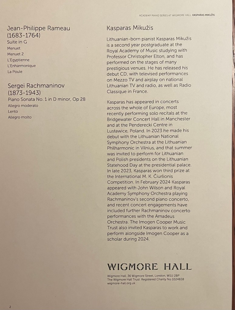 The triumph of the Lithuanians -Kasparas Mikužis ignites the Wigmore with the two ‘R’s’