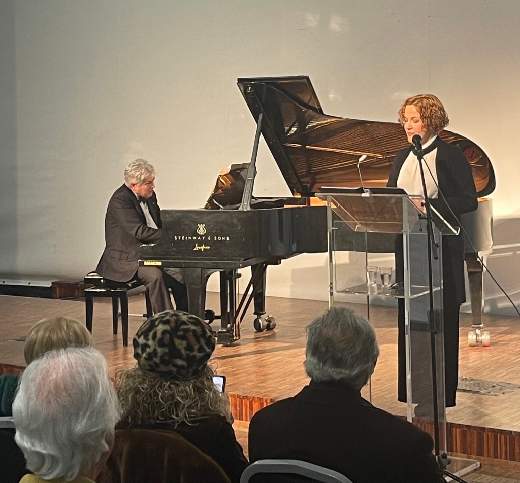 A concert in which Mara Gualandris tells the tragic Victorian tale of Enoch Arden. Richard Strauss providing the very important score for piano which was played by Valerio Premuroso. I had met Valerio in 2008 when he was the Deus ex machina of the Rina Sala Gallo International piano competition in Monza and have not seen him since.