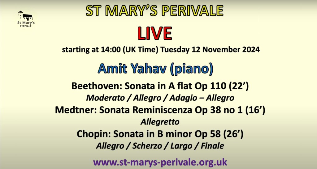 The Medtner Sonata was given an exemplary performance where Amit’s musicianship and technical mastery allowed him to steer through the composers sometimes foggy textures with an architectural line that allowed us to appreciate the trees in an overcrowded wood .