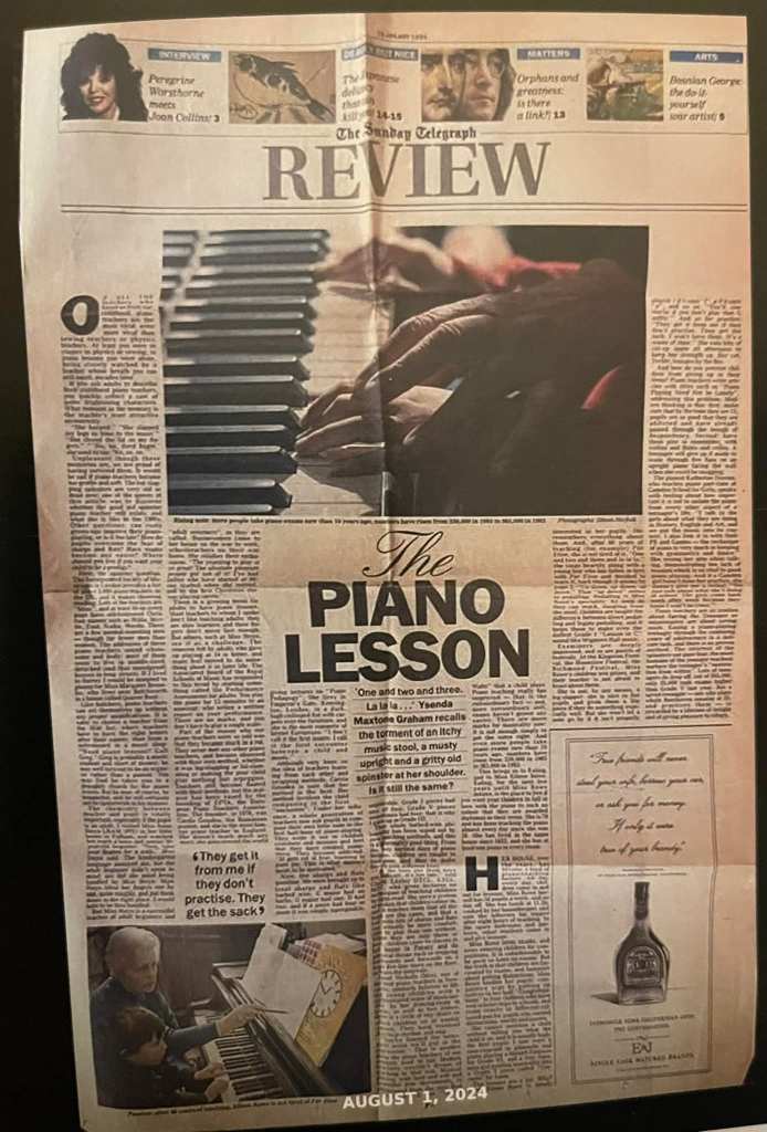 Piano and tennis were Miss Rowe’s passions, and sometimes went hand in hand with a TV perched on the piano so she could not miss a match, but also not miss a note of her pupils. She would be so proud to witness the standing ovation that awaited Noah after his breathtaking last encore.