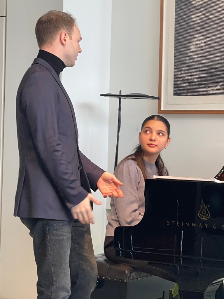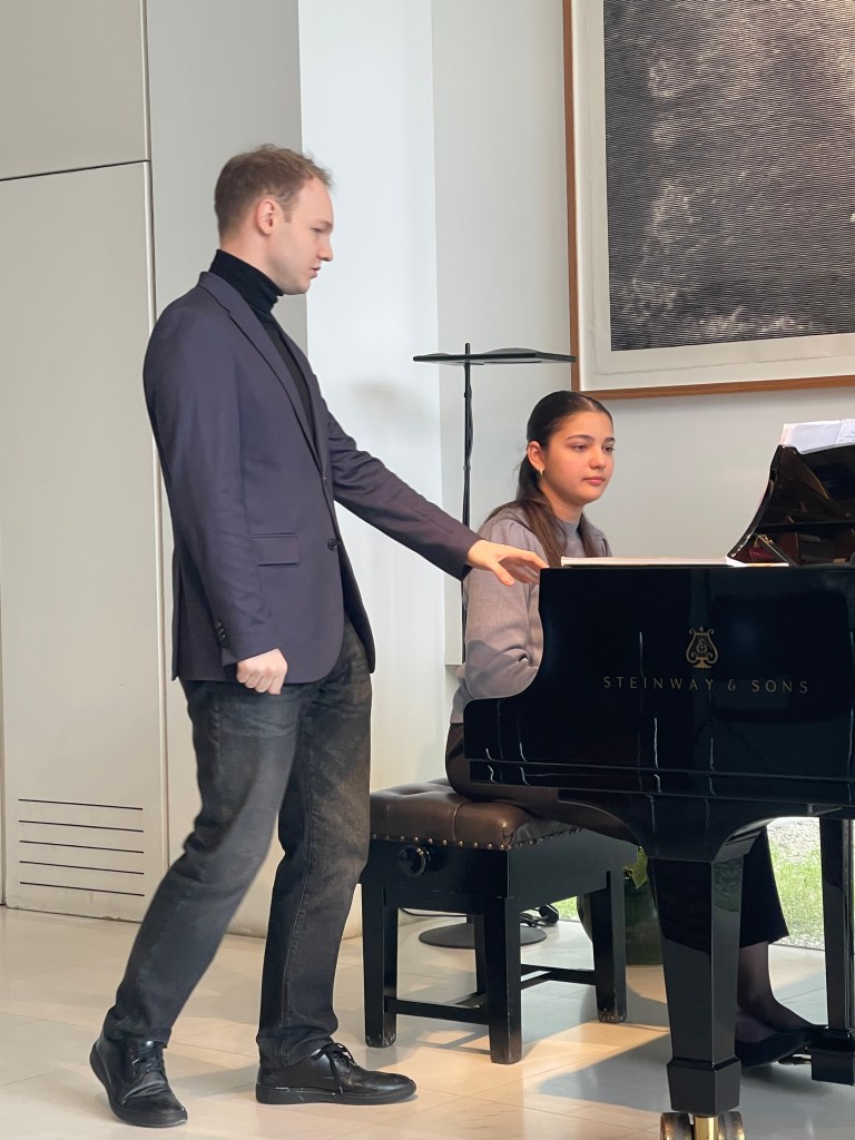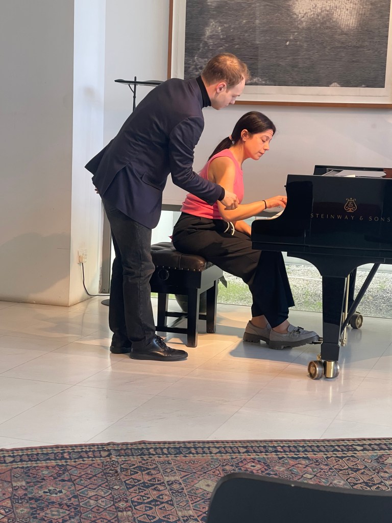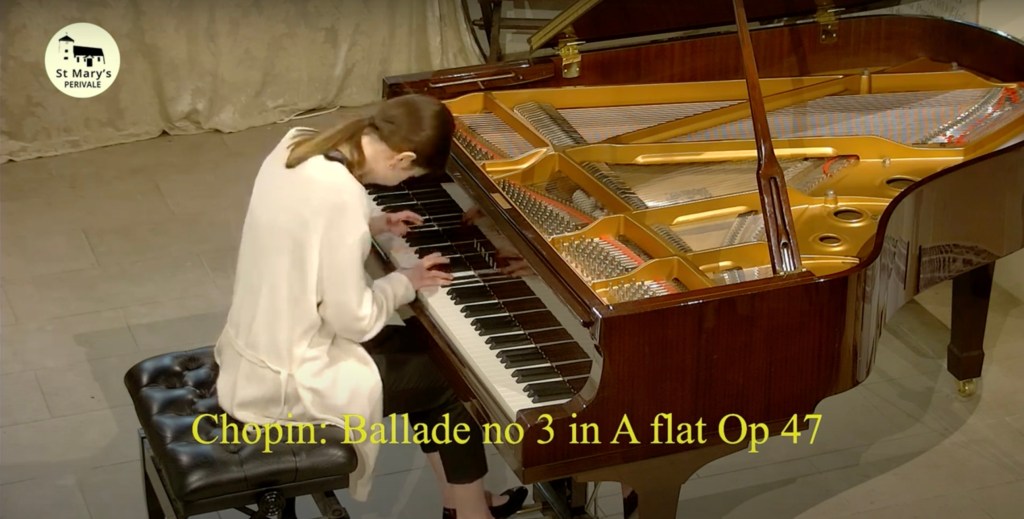 Giovanni Bertolazzi working with Maria Matheus ( Chopin Fantasie Impromptu) Ella Zhou ( Chopin 2nd Ballade ) Anna Avramidou ( a student of Tessa Nicholson at the Purcell School playing Beethoven op 57 Ist Movement and Debussy Feux d’Artifice). Two local pianists playing Chopin with passion and intelligence.