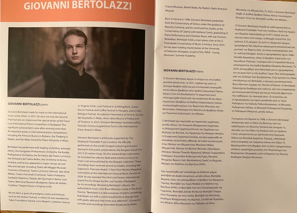 The second half of the concert was dedicated to Liszt who is a composer that is close to Giovanni’s heart. He was justly feted in the Liszt Academy with a top prize in the International Franz Liszt Piano Competition at the age of twenty two. The remarkable thing about his Liszt playing is his total identification with the sound world that the genius of Liszt could bring to the piano. I have heard him in Rome play all seven of the transcriptions and paraphrases that Liszt made of Verdi operas. Today he chose just three with the deep bass brooding of the ‘Miserere’ from il Trovatore where out of these dark sounds a ravishing melody emerges ever more elaborate played with a beguiling style and astonishing virtuosity. The ‘Rigoletto’ paraphrase is perhaps the most often played of these Liszt revisitations of Verdi. Giovanni played it with great style with swirls of notes with the so called ‘three handed piano playing’ that Liszt and Thalberg were to use with such extraordinary effect on pianos that now had a sustaining pedal that allowed a melodic line to be shared between the hands in the tenor register with swirls of notes all around. Giovanni brought a richness and beauty together with breathtaking pyrotechnics but also a bewitching sense of dance that was quite hypnotic in its charm and even daring.