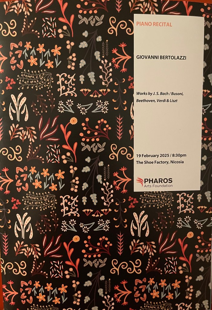 Some remarkable playing at the Pharos Arts Foundation from the young Italian virtuoso Giovanni Bertolazzi. A programme that ranged from the imperious nobility of the Bach Chaconne through the driving intensity of Beethoven’s Waldstein Sonata to Liszt’s ravishing revisitation of Verdi and his funabulistic vision of Dante.