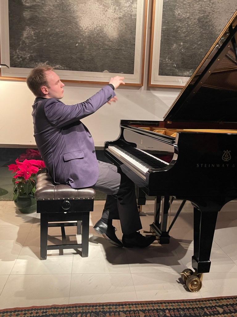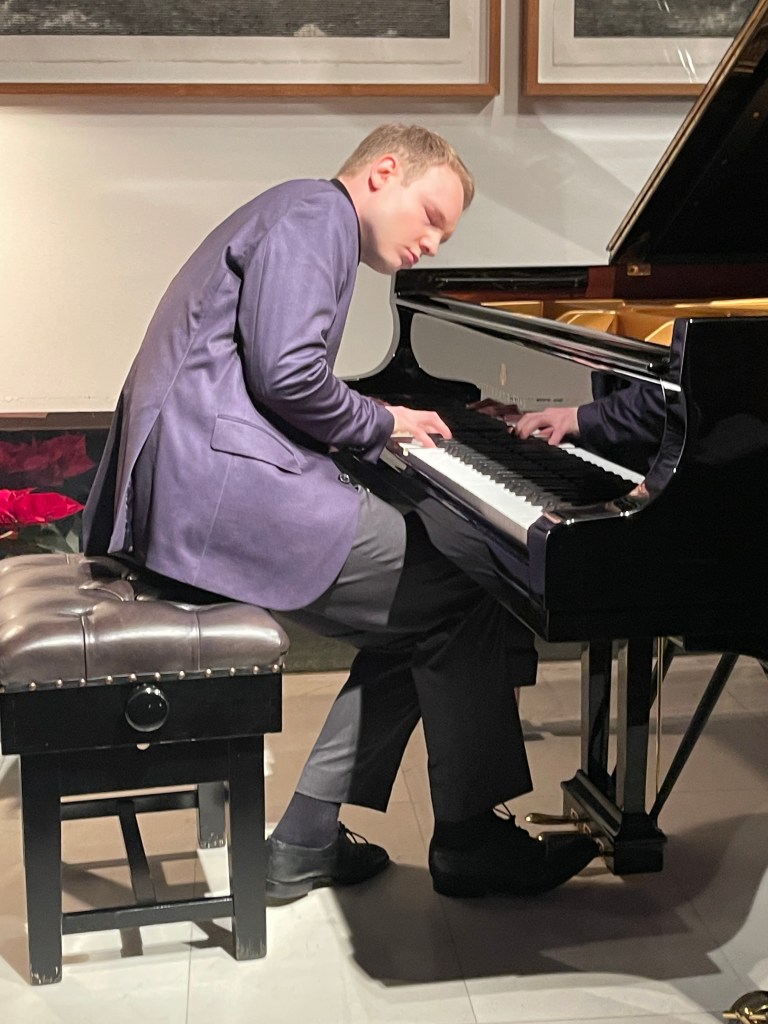 Dmitrii Kalashnikov was born in Russia, Moscow. He has been a postgraduate student at the Royal College of Music, London, since 2018 in the class of Professor Vanessa Latarche as a Ruth West Scholar supported by the Neville Wathen Scholarship, and more recently as a Blüthner Pianos scholar. His earlier studies began at the age of five at the Moscow secondary special music school named after Gnessin in the classes of Ada Traub and Tatyana Vorobieva. In 2017 he graduated with honours from the Moscow State Conservatory P.I. Tchaikovsky, where he was taught by Professor Elena Kuznetsova and Mira Yevtich. His prizes have included the Queen Elizabeth the Queen Mother Rosebowl at the RCM, awarded to a student of distinction, the winner of the 2019 final of the Jacques Samuel Intercollegiate Piano Competition (London) and, in the same year, the first prize at Les Etoiles Du Piano International Piano Competition (France). In 2021 he won first price on the Junior Intercollegiate Piano Competition (Beethoven Piano Society of Europe). Dmitrii performs regularly with the Russian National Orchestra under the direction of Mikhail Pletnev. In December 2014, Mikhail Pletnev and Dmitrii Kalashnikov gave a two -piano recital in the Great Hall of the Moscow State Conservatory. Other performances have included those at the House of Music in Moscow, Concert Hall of Mariinsky theatre in St. Petersburg, and major halls in UK, France, Austria, Estonia, Italy, Poland, Belgium. He has performed Hummel Piano Concerto in. A minor no 2 with the RCM Symphony Orchestra as winner of the RCM Concerto competition. In 2019 Imogen Cooper chose Dmitrii for her master-classes after audition in the Royal Academy of Music who sponsored Imogen Music Trust fund. Helping others plays a big role in Dmitrii’s life. For several years, together with a young talented artist – Gavriil Kochevrin, Dmitrii Kalashnikov organized evenings for the benefit of orphans in the House-Museum of Marina Tsvetaeva. Recent major concerts have included those at the State Tretyakov gallery in Moscow where he played at the opening of the largest projects of the Museum (Valentin Serov, Vasily Kandinsky and others), and at the opening of the season at the Theater Opera and Ballet of Nizhniy Novgorod in the presence of HE the Ambassador of Japan to Russia. In may 2021 Dmitrii Kalashnikov played for Sir Andras Schiff in Royal College of Music and after this master-class Sir Andras Schiff invited him to play on the Oxford Piano Festival Masterclass in 2021. Director of the London Philharmonic Orchestra invited Dmitrii to play Concerto by Tchaikovsky №1 in 2023 with LPO. Dmitrii Graduated the Royal College of Music in 2021 with distinction and now he is a student in University of Music and Performing Arts (Vienna), prof. Anna Malikova. In July he participated on the Lille’s piano festival in Louvre 2 (France) the concert in the Wigmore Hall, and in November 2021 he played on the Lang Lang’s master class (konzerthause, Vienna). Also, he had performances in the USA (2022).