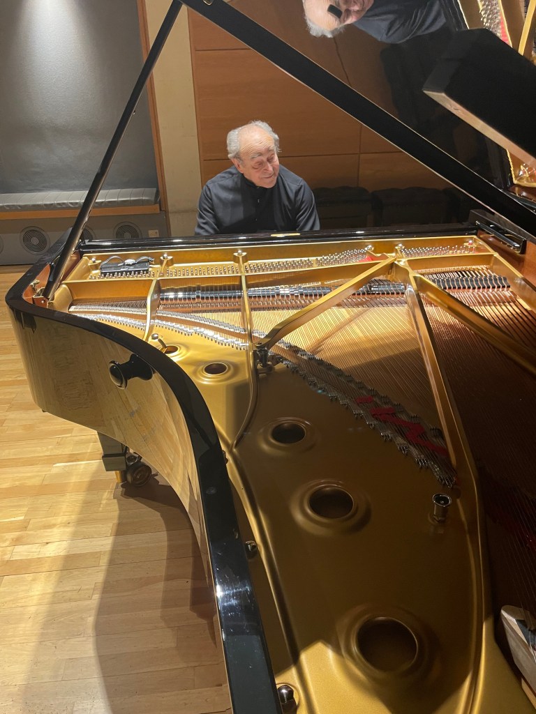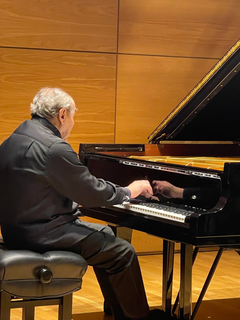 Beethoven’s original slow movement for the ‘Waldstein’ Sonata was the ‘Andante Favorì’, that the composer substituted for a much simpler introduction to the final bell like beauty of the rondó. It is much too an important work which Alberto showed us today and made us understand why Beethoven had realised that his pen had taken him to a work that could only stand on it’s own (as with the poignancy of Mozart’s B minor Adagio). It was played with extraordinary intensity as the opening ‘gasps’ were transformed into a question and answer of dialogue and the extraordinary melodic invention that genius could convey in variations of such varied character. The intensity that Alberto brought to this great work was diffused by the simplicity and haunting beauty of Schumann’s ‘Eintritt’ (Entrance). Played with a feeling of innocence as it is a true Hymn to the exhilaration and joy of being free. Alberto painted each of the nine scenes with vivid characterisation and a weight that reminded me of his childhood friend Martha Argerich. They both spent their early, formative years in Buenos Aires and were given a technical training from Vincenzo Scaramuzza that has seen them through a long and distinguished life in music. It is most noticeable not only for the etched beauty and solidity of their touch but to watch the arch of their hand with wrists kept very low shows us even in their 80’s a mastery that is so natural that age has no relevance.