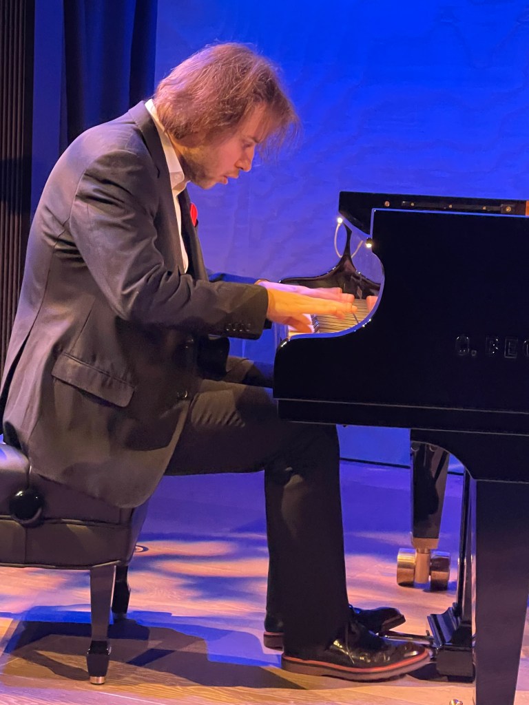 A monumental performance of Mussorgsky’s ‘Pictures at an Exhibition’ showed off Nikita’s extraordinary self identification with the pictures that had so inspired the composer to write what is his undisputed masterpiece. But it was his arrival to ‘Catacombs’ after an extraordinarily brilliant ‘Market Place at Limoges’ that one was suddenly aware that there was magic in the air. One of those rare but miraculous moments when strangers are united by the magic that only music can hold. From here, together with Nikita we were even more aware that the only thing that mattered was the music that was filling the room. Nikita felt it too because his fearless performance of ‘Baba Yaga’ and the ‘Great Gate of Kyiv’ were played as I can never remember hearing before.