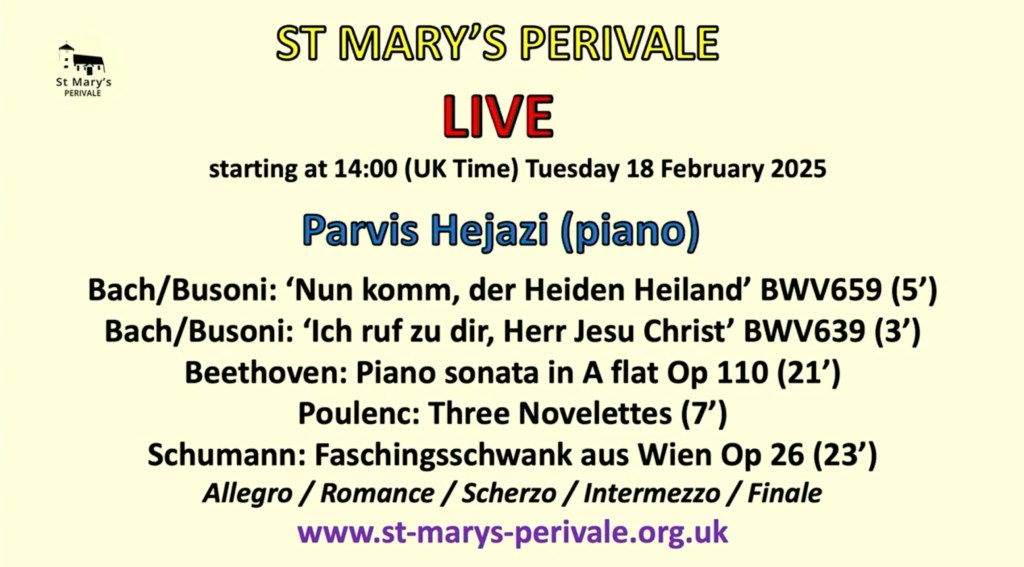 ‘Ich ruf zu dir ‘ is one of the most beautiful of all Busoni’s reimaginings of Bach and I was reminded today of the much missed Nelson Freire who would always include it somewhere in his recitals in Rome together with Gluck/Sgambati : Melody from ‘Orfeo ed Euridice’. Parvis played it with a radiance and a beautiful wave of sounds on which he etched Bach’s glorious melodic invention, sustained by sumptuous bass notes that gave a monumental richness to the beauty that was unfolding from Parvis’s sensitive hands with poignant simplicity.