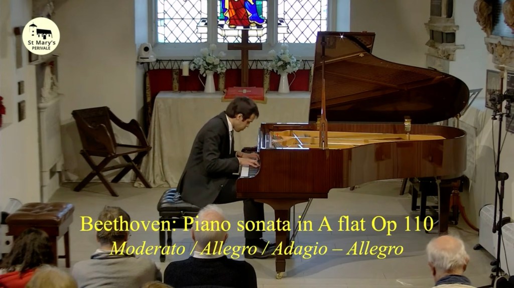Beethoven’s penultimate sonata was played with remarkable technical and musical preparation where even the treacherous leaps in the ‘Trio’ of the ‘Scherzo’ were played with fearless abandon and authority. But as Parvis said in his very interesting and authoritative introductions:’ Is Beethoven a Classical or Romantic composer?’ Well let us not forget that his teacher, Haydn was the inventor of the symphony and inherited the musical forms of his age, bringing them to a new stage of genial invention, but they were mostly of the refined denial of his age. Beethoven took these early forms from his mentor and transformed them with genius, bringing them into a world of ‘Sturm und Drang’ where music could dig deep into the emotions and reveal things that words could never do. Parvis had seen Beethoven as classical and his performance could have had more time to breathe and be shaped with a style that is both classical and romantic. A beautiful opening to op 110, but after a rather prolonged trill suddenly the tempo changed and the ravishing beauty of the opening ( similar to the fourth piano concerto) gave way to a chase. Played with great mastery but lacking the ‘spiritual’ character of one of Beethoven’s gentlest late creations. Beethoven’s irascible contrasting temperament of sudden eruptions and abrupt changes are alien to this last sonata ( and also the one before op 109) giving way to a gentler more accommodating vision of life. Parvis, always playing with a very sensitive sense of balance and extraordinary clarity which suited more the ‘Scherzo’ than the ‘Moderato’ of op 110. The ‘Adagio’ was played with beautiful poise where Beethoven’s own pedalling give a luminous glow to the absolute clarity of the knotty twine that was unfolding. The great ‘Aria’, though, floating on a heart, beating intensely, missed the etherial magic of a composer who had come to terms with a difficult and turbulent life and could now envisage the paradise that was awaiting him only a few years later at the age of fifty seven.