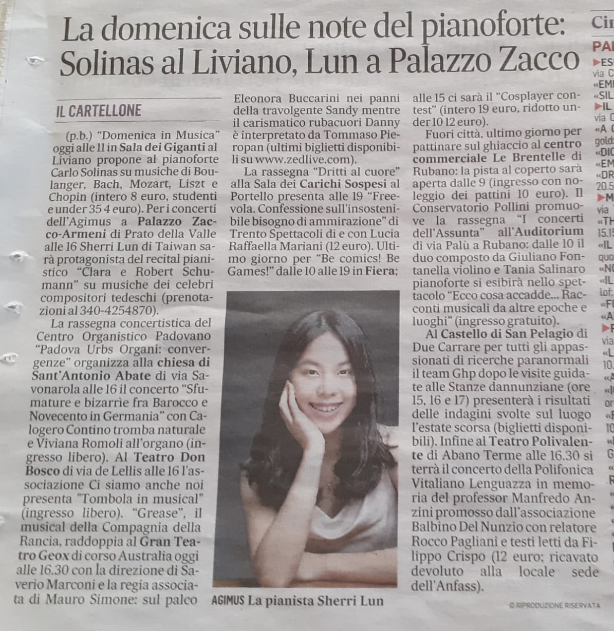 ‘In partnership with the Keyboard Trust of London and the Robert Turnbull Piano Foundation, the 21 year old pianist from Hong Kong , Sherri Lun, played for the ‘Incontri sulla Tastiera.