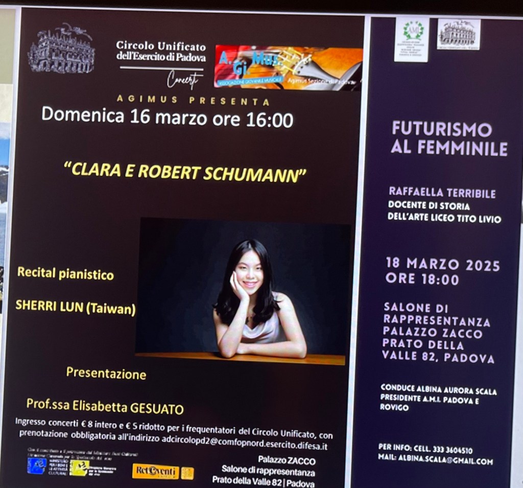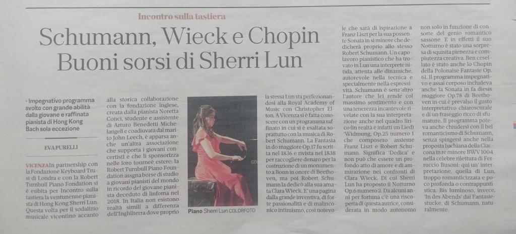 Sherri just two days after playing in London began her Keyboard Trust Italian tour in collaboration with the Robert Turnbull Piano Foundation, with a triumphant appearance in Vicenza.
