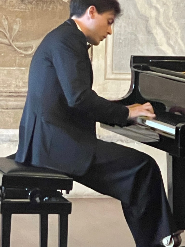 Scriabin’s 5th sonata entered on a whirlwind of demonic sounds immediately diffused by the glowing fragments that were wafted over a cauldron of ever present burning intensity. Fragments that Carlo gradually brought together with masterly musicianship and sense of architectural shape until Scriabin’s star filled this magnificent piano and the ‘Giant’s ‘ hearts with the sounds that only he could possess and the street musicians were left like the poor morsels they obviously were behind the missing glass panes.A hall of such beauty and with perfect acoustic that has seen some of the greatest musicians of our time in the glorious activity directed by Filippo Juvarra and the Amici della Musica, with passion and the discerning taste of a real musicians.