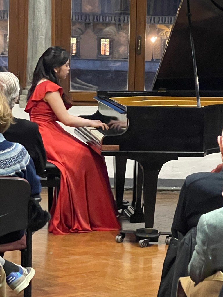 ‘In partnership with the Keyboard Trust of London and the Robert Turnbull Piano Foundation, the 21 year old pianist from Hong Kong , Sherri Lun, played for the ‘Incontri sulla Tastiera. This time for the appearance in Vicenza in the historic collaboration with the English Trust,created by Noretta Conci with her husband John Leech, (Noretta had been a student and assistant of Arturo Benedetto Michelangeli) , there appeared another association that sponsors young concert artists on their International tours : The Robert Turnbull Piano Foundation giving scholarships to young pianists from all parts of the world in memory of the young pianist who died of linfoma in 2018. These realities do not exist in Italy as they do in England where this same pianist, Lun, is perfecting her studies under Christopher Elton at the Royal Academy of Music. Her visiting card in Vicenza was with a refined programme of above all the music of Robert Schumann. The Fantasie in C op 17 was written in 1836 and revised in 1838 to raise funds for a monument in honour of Beethoven in Bonn, that Robert Schumann dedicated to Liszt, with it’s outpouring of love for Clara Wieck. It is a work of great originality, strong passions and intimate nostalgia of such importance that it became the inspiration for Liszt’s B minor Sonata that he dedicated to Robert Schumann. A pianistic masterpiece that found in Lun an interpreter of precision with great attention to the dynamics and an authoritative technical command of expressive sensibility . There can be no doubt that Schumann is the composer that she has most feeling for, with a ravishing tenderness that was revealed also in her performance of his song ( in reality a Lied). ‘Widmung’ op 25 n 1 was composed by Schumann and trascribed for piano by Liszt. It means ‘Dedication’ and is a profound declaration of love and admiration for Clara Wieck. It was her Nocturne op 6 n 2 that Sherri also played. For some years this composer has been rediscovered and admired for herself and not just as the partner of a Romantic German genius. In fact her nocturne was a surprise for its exquisite fullness and creative style. Well etched also was Chopin’s Polonaise-Fantasie op 61 . This important and robust programme also included Beethoven’s F sharp Sonata op 78 in which she revealed a kaleidoscope of colour and sensitive phrasing. The programme could have finished there with the beautiful romanticism of Schumann without bothering to play the Bach Chaconne in D minor BWV 1004 in the famous reworking of Ferruccio Busoni : where Lun’s interpretation was too romantic, lacking in profundity and contrapuntal shape. On the other hand she played a glowing encore ‘In des Abends ‘ from the ‘Fantasiestücke’ ………by Schumann of course .
