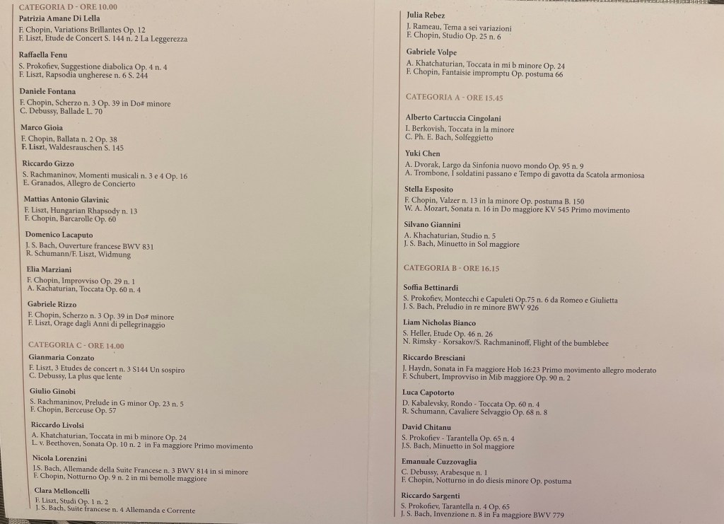 Sabato 22 marzo, all’Auditorium di Largo Mahler, la Finale del Concorso Pianistico Steinway per Giovani Talenti porterà sul palco i migliori giovani pianisti: un evento imperdibile per gli amanti della grande musica che inizierà alle ore 10.00. Alle 17:30 verrà proclamato il vincitore, che rappresenterà l’Italia al Festival Internazionale Steinway ad Amburgo. L’evento è gratuito e i posti sono limitati e non numerati: è possibile accedere e assistere alle esibizioni in qualsiasi momento.Steinway reigns in Milan as music pours – it never rains but it pours – out with something old and something new thanks to Maura Romano and her team at the helm of the flagship @ Steinway & SonsThe 27 contestants playing from 10 am to 17 pm with a indestructible jury made uo of Franceso Libetta,Gile Bae,Bertrand Giraud,Costanza Principe and Christopher Axworthy of the Keyboard Trust alias the indisposed Alexander KrichelLuarda Nezha Country Manager Steinway & Sons Italy Dealer Network , indefatigable organiser and presenter of the competitionMattias Antonio Glavinic first prize D category with a prestigious concert in Romania . I had heard at Steinway Christmas Party when he was half the size he is now Steinway celebrates their first Christmas at the helm in Milan https://christopheraxworthymusiccommentary.com/2023/12/17/steinway-celebrates-their-first-christmas-at-the-helm-in-milan/Alberto Cartuccia Cingolani winner of A category and the prestigious radio prize A star and a youthful master The extraordinary Julia Rebez winner of C category and special 200 euro scholarship An extraordinary Rameau and quite astonishing Chopin op 25 n. 6 (double thirds study )Emanuele Cuzzovaglia winner of B category Some beautifully poised playing of Debussy and refined beauty of Chopin’s posthumous Nocturne in C sharp minor The prize winners and jury complete! photo courtesy of Maura Romano beauty everywhere …ravishing sounds and a thank you with magnificent white roses Costanza Principe and Francesco Libetta with Alberto and Ioana ChinesThe jury minus photographer CA The indomitable Luarda directing young and old with charm and sensibility on this very special occasionThe honour to be Alexander Krichel for the day so I get to embrace this magnificent pianist after her ravishing candlelit performances . The moment Elena Chiavegato touched the piano I recognised her immediately for the concert I had reviewed in Cremona with her superb ‘Donne Romantiche ‘ programme A letter from Cremona ,the eternal city of music where dreams become reality. https://christopheraxworthymusiccommentary.com/2024/09/30/a-letter-from-cremona-the-eternal-city-of-music-where-dreams-become-reality/ Maura Romano seated at the magnificent Steinway D piano that Elena played with exquisite sounds of ravishing beauty ………Nocturnes by Chopin, Mendelssohn/Moszkowski,Amy Beach and many many others ,played by candlelight on this special Earth Hour in collaboration with the remarkable Portrait Hotel in the centre of Milan where once stood a monasteryGile Bae and Francesco Libetta Far left Costanza Principe with Francesco Libetta – far right Maura Romano with Bertrand Giraud – Luarda Nezha and our hostess , Cristina Fogliatto, at the Portrait Hotel