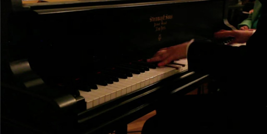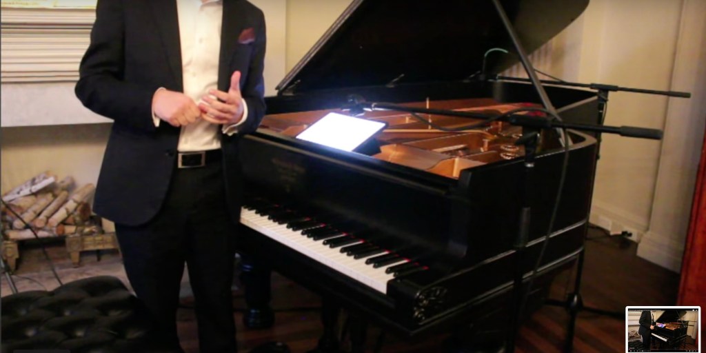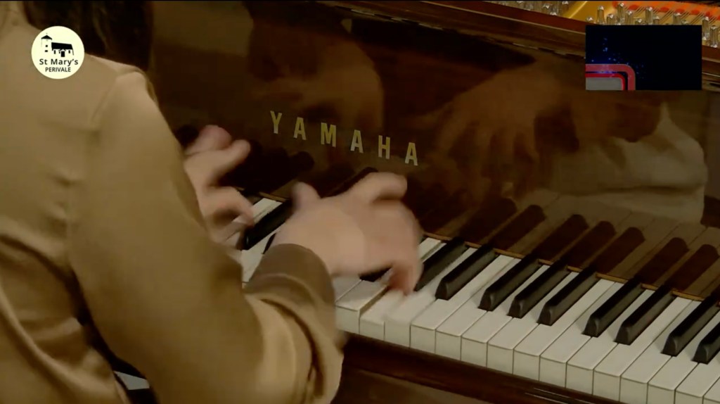Already with the opening work by Helen Ottaway, although we could not hear the introduction, as a headless Iyad spoke out of range of camera and microphone. It was obvious that this was a work that uses the piano not as a percussive instrument but as the Pandora’s Box it can be in a true artist’s hands. A lot of it reminded me of the hypnotic repetitive sound world of Steve Reich, as there were magical sounds resonating through this ‘historic’ instrument with a mellifluous flow of flowering intensity.