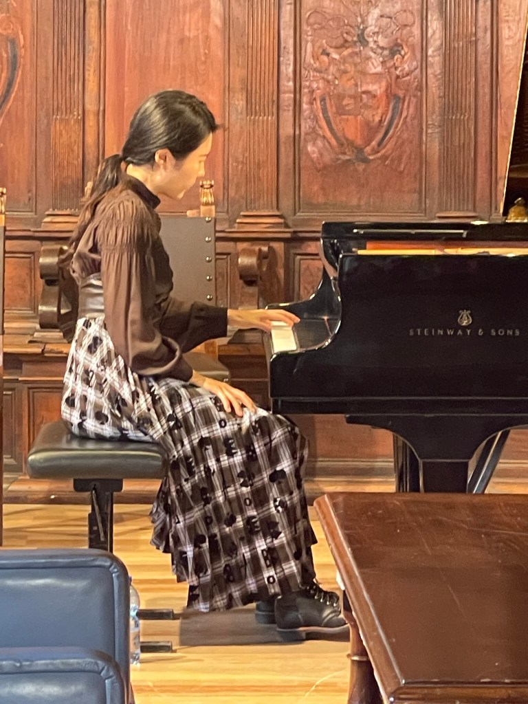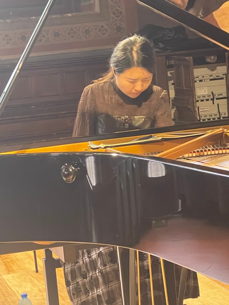 Haydn’s two movement late C major Sonata opened with an ‘Andante’ of delicacy and etched beauty of a continual questioning as the beautifully shaped melodic line was imbued with a subtle sense of colour. A ‘Rondò’ that sprang from her fingers with a refreshing ‘joie de vivre’ and impish sense of humour of scintillating rhythmic drive. Fluidity and golden delicacy she brought to Debussy’s ‘Estampes’ with a kaleidoscope of sounds bathed in pedal,creating the same magic and ethereal perfection that Richter was to seduce us with on his first visits to the West. ‘Pagodes’ with a sheen of magical sounds that were wafted into the air with a mixture of melody and mist that became ever more intense, bursting into passion and fire only to disappear to the wondrous land from which it had been born. Whispered haunting sounds of a ‘Soirée dans Grenade’ seen in the distance as it gradually came into view with its rhythmic insistence wrapped in a warmth of ravishing beauty. The pitter patter of rain in ‘Jardins’ was of gentle persuasion as its velvet clarity gave way to a vision of childish wonderment. Chloe demonstrated her masterly control of sound and transcendental command as she brought these three etchings to us as if newly minted, with a freshness and perfection of rare sensibility. There was delicacy and a perfection of art that conceals art but there was also passion and intensity as Chloe kept her eyes glued to the keys with daggers drawn. Looking down at her hands as they delved deep into the keys with selfless authority commanding them to show us what was in her heart and mind. Her work with Andras Schiff at the Barenboim-Said Academy has only intensified her wish to delve ever more deeply into the scores of the great masters and share them with a public hungry for the message that is hidden within.