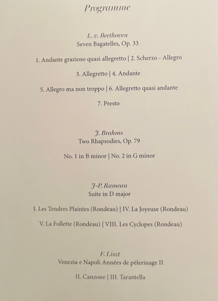 It is good to see an aspiring young virtuoso as much in love with the beauty of the piano that has been bequeathed to us by masters of the past. It allows us to forgive and forget the new generation of ‘virtuosi’ with their transatlantic metallic sound trying to break the sound barrier ( pianos are more resilient these days!)