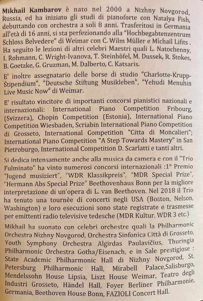 Chopin’s Nocturne in E flat op 9 n. 2 was played by Mikhail with whispered beauty and barely suggested asides with embellishments that were in fact described in the most recent authentic edition of Chopin.