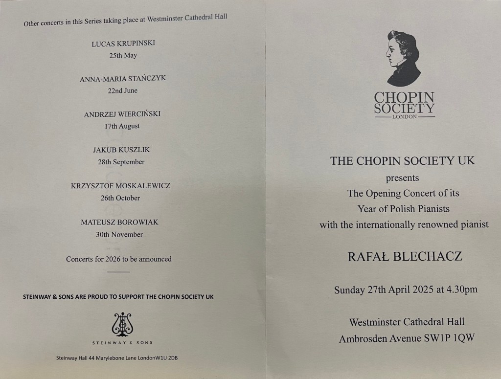 The Chopin Society UK proudly present as the Opening Concert of their “Year of Polish Pianists” Series