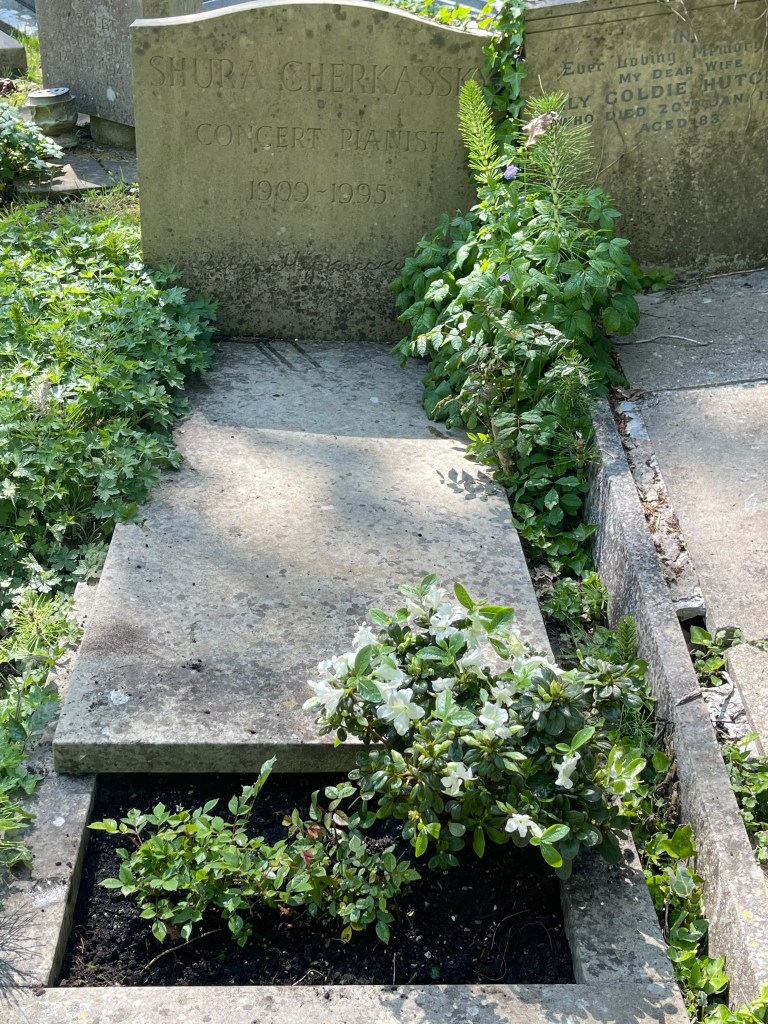 And now down the hill to tend Shura’s resting place that I promised his long term companion,Doreen Davis that I would continue to look after when the time would come that she too would join him ,together with with Schubert iand of course Marx, a place even more beautiful than the paradise that is Highgate today.