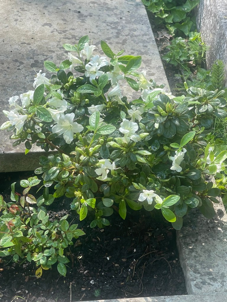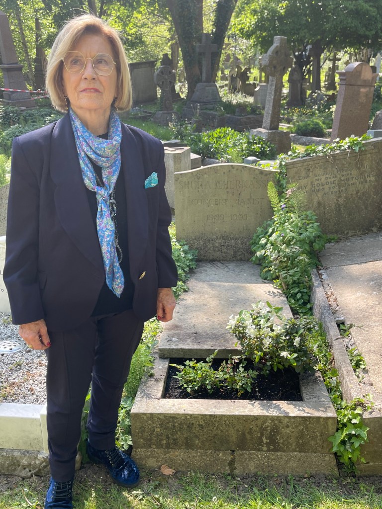 with an Italian friend and follower of Antonio’s concerts the writer of these words with the two artists whose music could speak louder than any words I could add.Gabriella Cicognani on a visit to London and to Highgate Cemetery Rhododendron Encore Pure White for Shura today – red roses last time