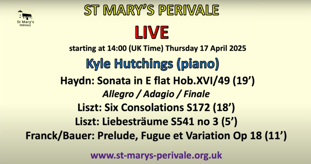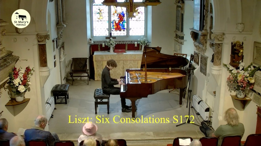 Liszt ‘s six consolations were played with a yearning and beauty of simple fluidity. Only in the last one did Kyle play over mezzo forte such was the refined elegance of a dream world of consolation.