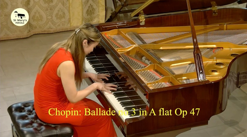 We were now ready for the veiled virtuosity of Chopin’s study op 25 n. 6 as I have described above. It was the sign of a real musician that out of the final whispered chords Nikola allowed the first notes of Chopin’s third ballade to be born.