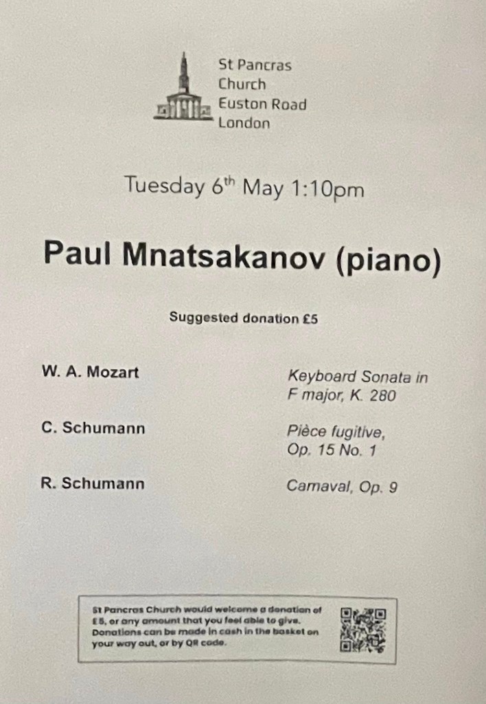 He had played it over three consecutive mornings in St George’s Hannover Square but it was far too early, even for me! I remember Shura Cherkassky’s Funeral there in 1996, but at a more civilised time.