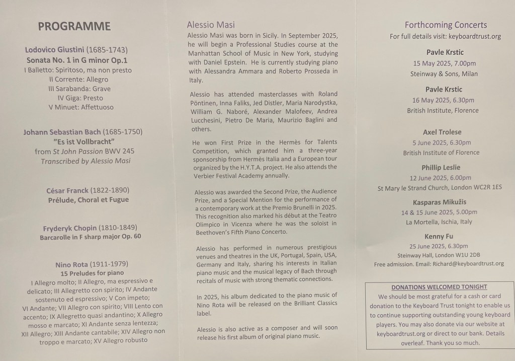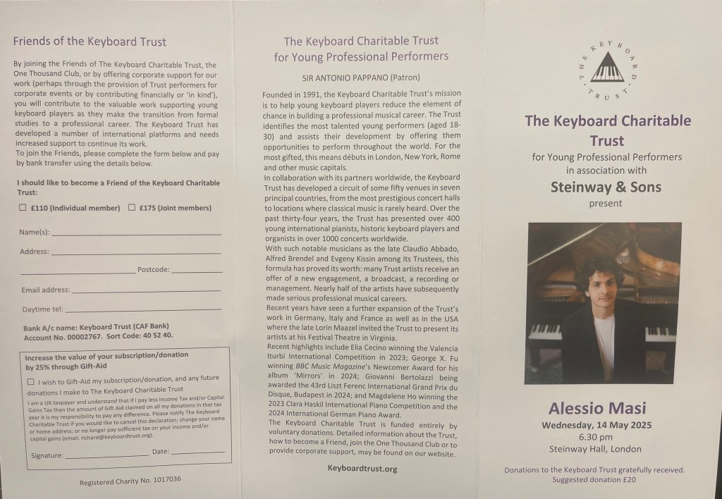 Alessio Masi at Steinway Hall for the Keyboard Trust ,substituting at short notice an artist who had not received her visa.