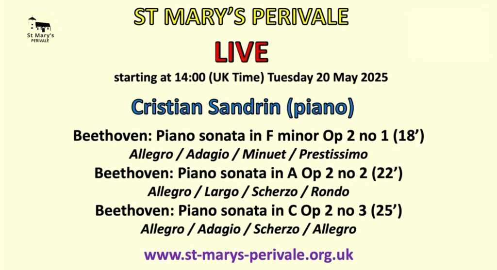Cristian has started at the top having just recorded the last three Sonatas dedicated to his father Sandu Sandrin’s memory. And only now I hear him play from the bottom, and judging from his masterly playing of these early op 2 Sonatas and the Trilogy, I hope he will now fill in that vast gap which is the map of Beethoven’s life in 32 steps.