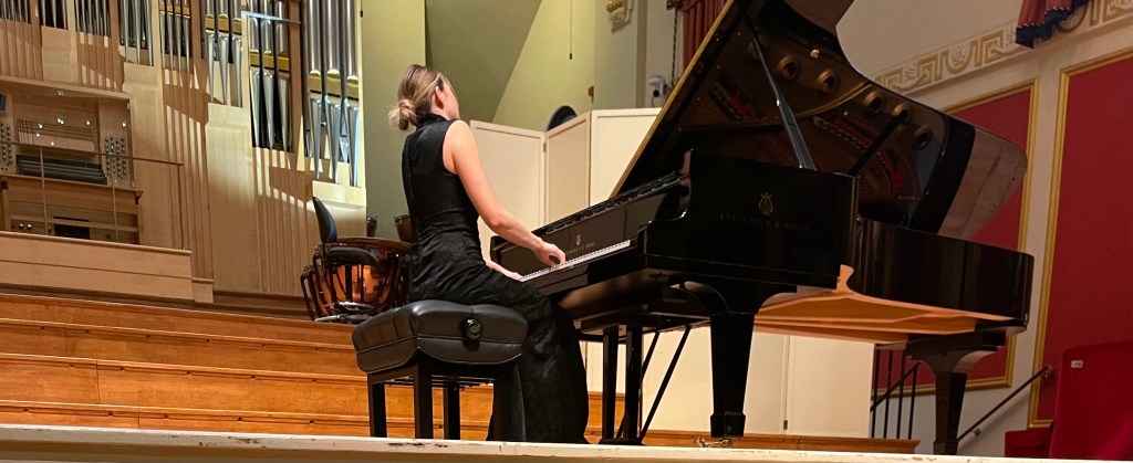 Sounds in Scarbo that I have never heard before, with a middle episode that was a diabolical cauldron of x certificate sounds . The impish Scarbo flitting over the keys, darting here and there like a will o’ the wisp never knowing where he was going to appear next. A massive culmination of diabolical melodic outpouring where Dominika pulled out all her mastery of an art that conceals art but always one that is concerned with communication not technical gymnastics. An hour of true music making ‘old style’!? Sheep may safely graze in Dominika’s masterly hands.