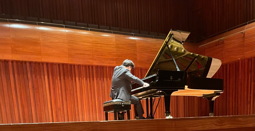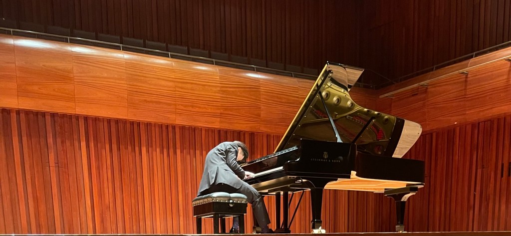 There can be no stronger opening for a recital than Gubaidulina’s Chaconne(1962)–written when she was a student at the Moscow Conservatoire–which literally opens with two thunderous B minor chords on either end of the keyboard. Gubaidulina employs serialism techniques to vary the 23-note tone row which constitutes the ground bass of the chaconne. It is therefore much less noticeable than the ground bass of the “other” famous chaconne by Bach, which feels much more the unifying factor of the music. However, her modernist take on the Baroque form gives Gubaidulina much more freedom and flexibility with the material. The melodic contours of the theme give way to rhythmic shadows, giving rise to new melodic material and even a chromatic fugato section which reminds me of Liszt’s Sonata (also in B minor!). The dissonances and angularity in the music reminiscent of works by her other Soviet compatriots Prokofiev and Shostakovich expresses an aggressive bitterness and violence which continues to resonate long after the grotesque clanging of bells at the end has subsided.