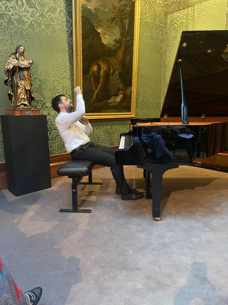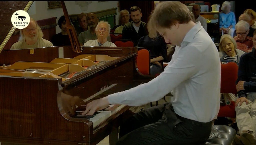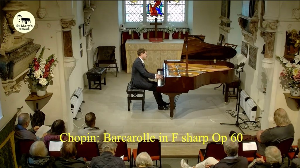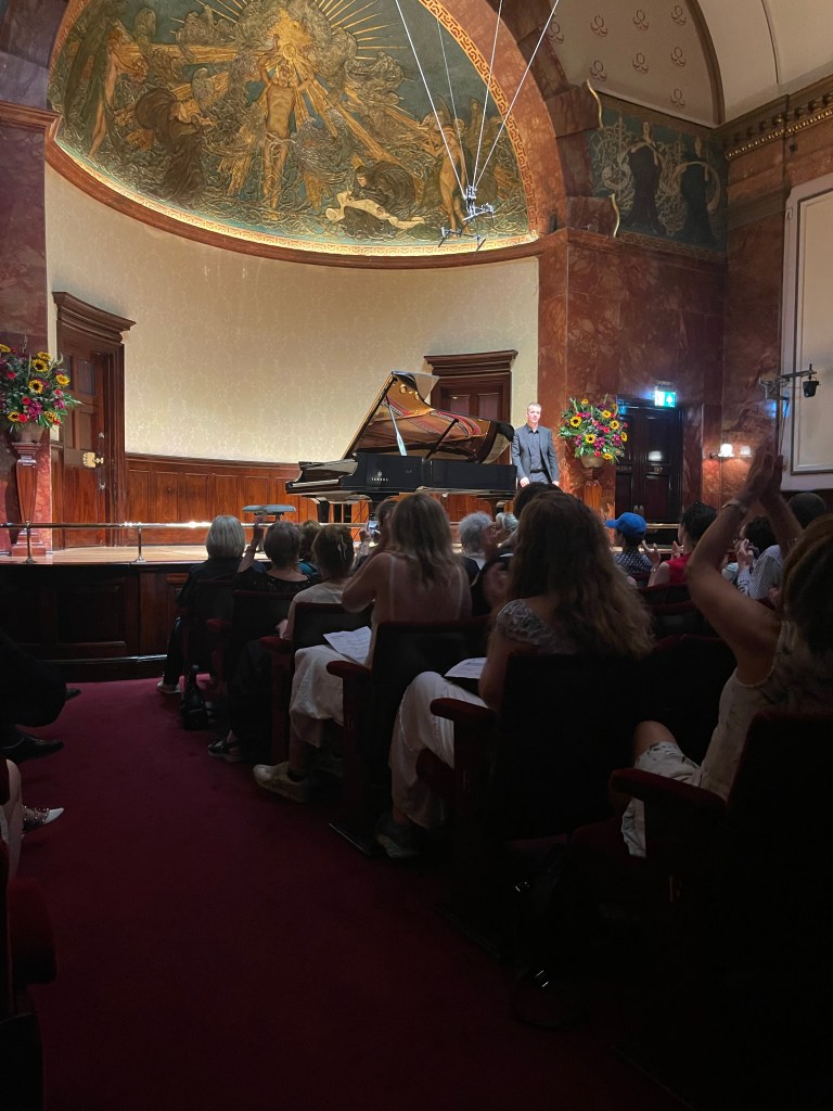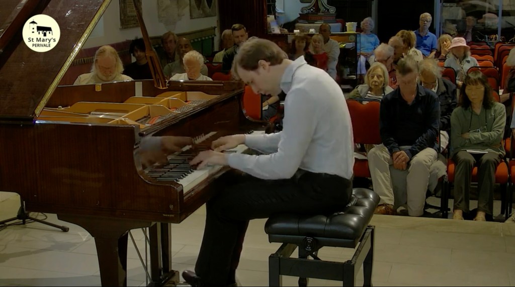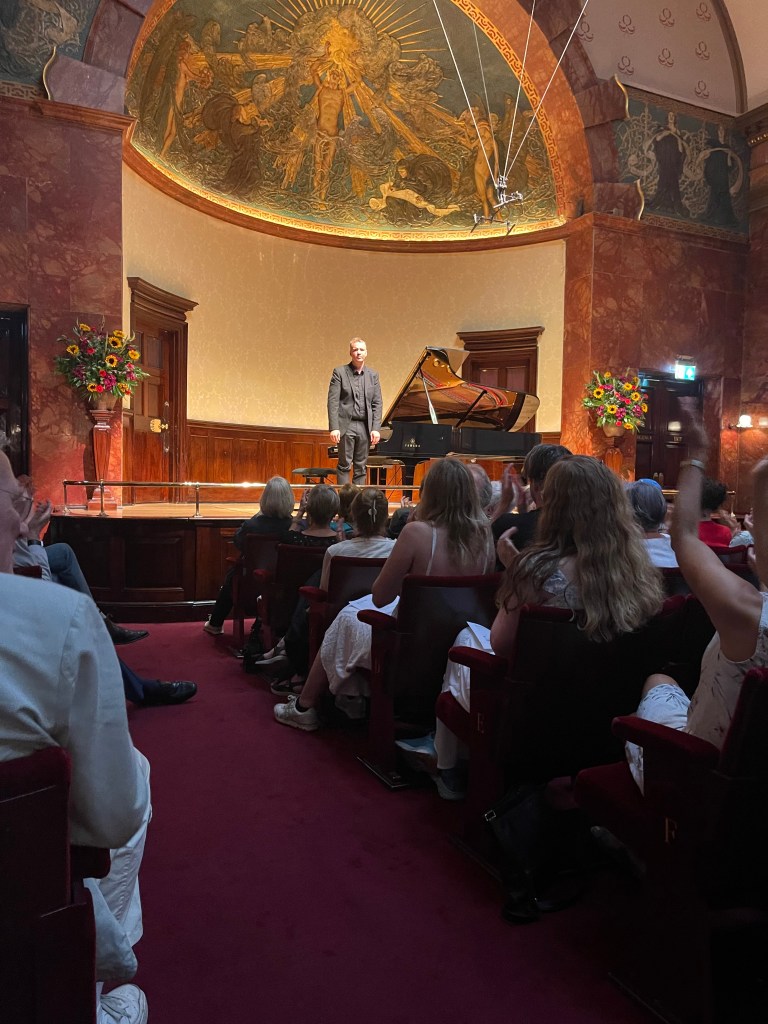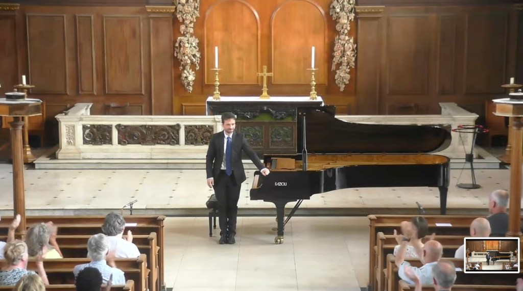 What a relief to shelter from the sweltering heat and spend an hour with music of such radiance and beauty from a husband and wife dream team . A moving mixture of Schubert ‘Winterreise’ and Vaughan Williams ‘Songs of Travel’ .
