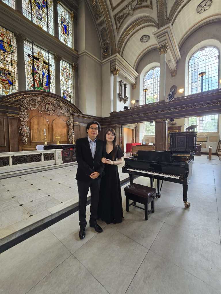 Helen with her father Meng Yi at her recital at St James’s Piccadilly – this beautiful church where Sigismund Thalberg ( the only serious rival to Liszt ) was married in July 1843 to Francesca Lablanche