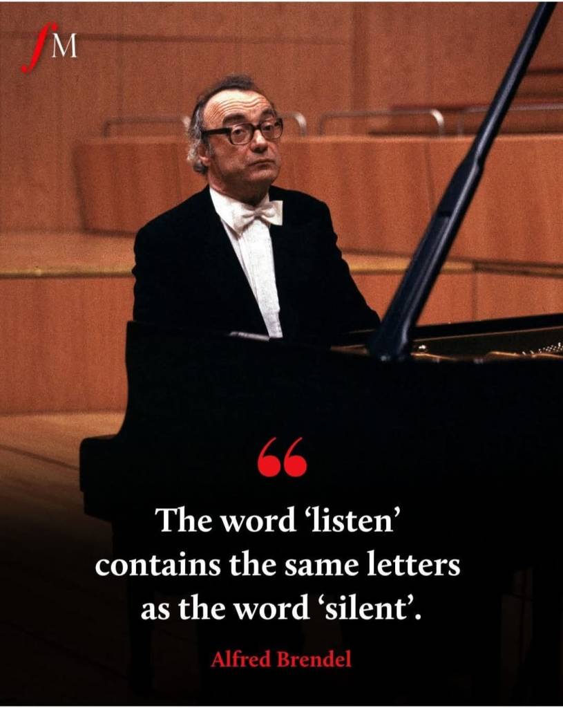 ‘Alfred Brendel friend and admirer of Noretta Conci and John Leech,founders of the Keyboard Trust of which he was an esteemed trustee from the very first day of its creation.He was a pinnacle to which all those that believed in Music with a capital M would refer to for guidance and inspiration . From his very early recordings of Beethoven but also Balakirev Stravinsky and above all Liszt here was a musician of great musical integrity that one could trust. Together with Serkin and Pollini they were were an elite group of masters who could show generations what it means to be an interpreter of humility honesty and integrity . It is no coincidence that Pollini, Brendel and Michelangeli shared the same birthday Brendel will remain a beacon whose flame will illuminate and inspire musicians for generations to come.
