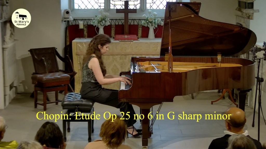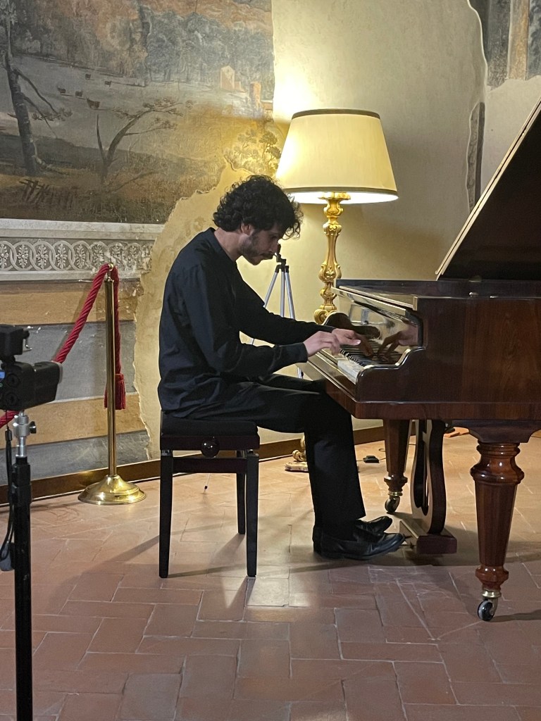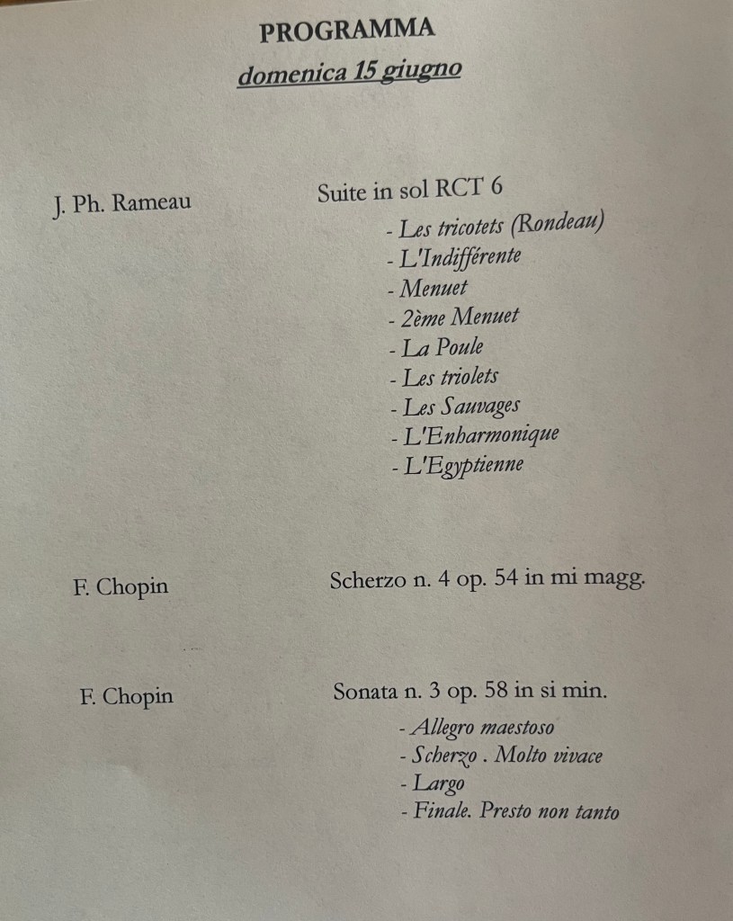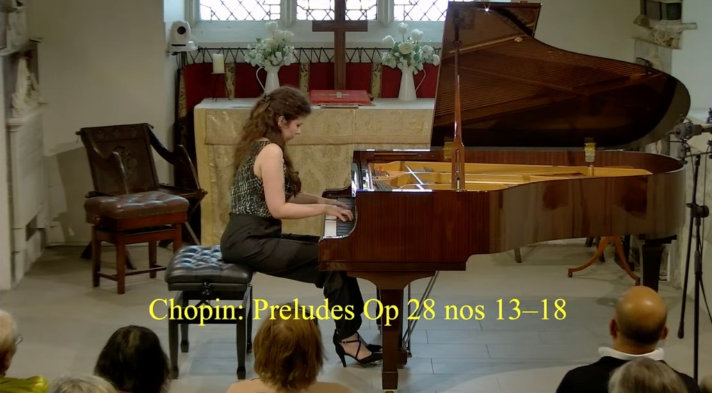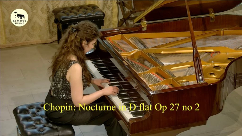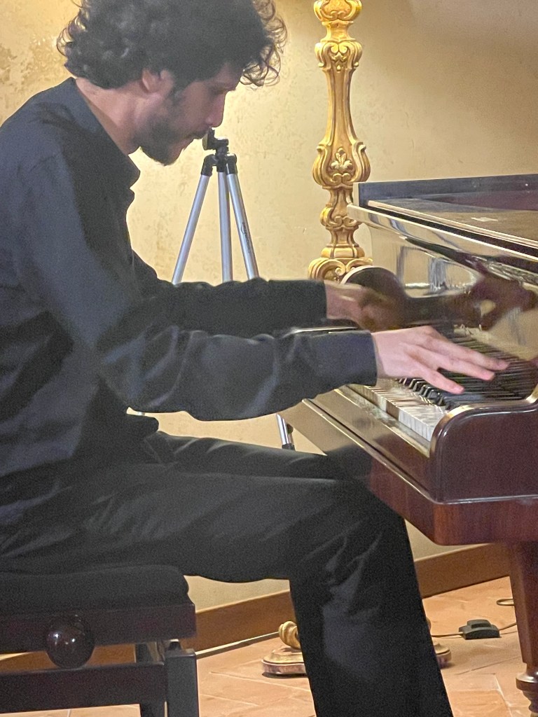 ‘ Some beautifully crafted playing of great intelligence.Her Mozart was simple and beautiful with sparkling playing of great weight.Playing of great poise in the slow movement of aristocratic beauty.The last movement sprang from her agile fingers with a ‘joie de vivre’ that was of great rhythmic energy and finesse. The Chopin Variations op 2 are the ones that Schumann on hearing Chopin play them in Paris was to remark ‘Hats off a genius’.A very well prepared performance of great musicality and intelligence where the technical difficulties were incorporated into a musical shape of beguiling style.A jeux perlé that flowed with teasing ease from her agile fingers.A fine performance that just missed the charm and grace of a show piece written especially as a visiting card for the young Chopin as he played in the Salons of the aristocratic Parisian families of his day.’ Christopher Axworthy Florence October 2023