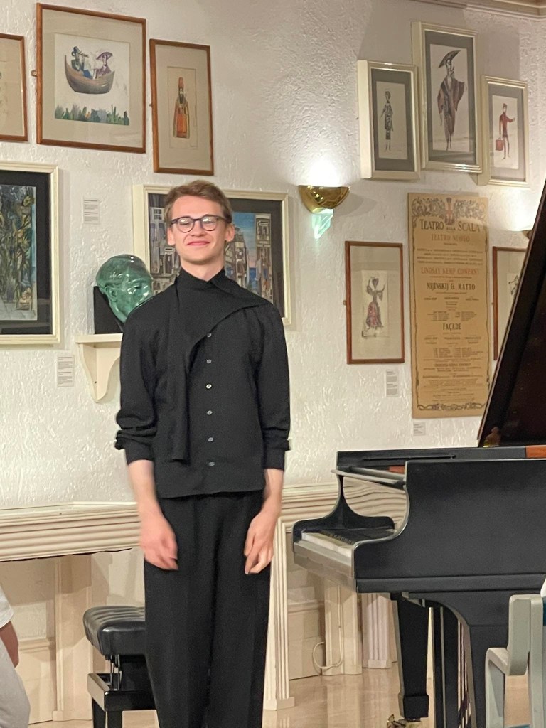 Kasparas’ musical talent was first recognized by Michael Sogny when he became a scholar of the SOS Talents Foundation at the age of 10. The foundation helped the young pianist gain exposure and concert experience by inviting him to perform at various venues, including their annual Christmas concerts held on the Champs- Élysées in Paris. Since then, Kasparas has performed at the United Nations Headquarters in Geneva on multiple occasions and at the EMMA for Peace World Summit of Nobel Peace Laureates concert in Warsaw. In 2018, he was invited to the opening concert of the V. Krainev Competition in Kharkiv, where he performed Prokofiev’s Piano Concerto No. 3. Other notable appearances include performances at the Fazioli Factory Concert Hall in Sacile, Italy, the Purcell Room at Southbank Centre in London, the season-opening concert of the Kharkiv Philharmonic Hall with the Kharkiv Philharmonic Symphony Orchestra under conductor Yuri Yanko, as well as performance at the Eudon Choi show during London Fashion Week 2023. Over the years Kasparas has received help from various foundations, including the M. Rostropovich Charity & Support Foundation (Lithuania), the SOS Talents Foundation (France), the Harold Craxton Trust (UK), the Hattori Foundation (UK), the Drake Calleja Trust (UK), Keyboard charitable Trust ,the Wayne Sleep Foundation (UK). Currently, Kasparas is a student at the Royal Academy of Music, where he completed his undergraduate studies with pianist Diana Ketler and is now pursuing his postgraduate studies with professor Christopher Elton. In recognition of his representation of Lithuania on the international stage, Kasparas was honoured with a letter of gratitude from the President of the Republic of Lithuania.